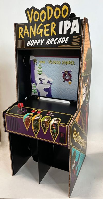New Belgium Brewing Company was looking for an old school, classic approach to promote their VooDoo Ranger IPA. The concept was based off a classic retro arcade themed case stacker that could amplify their brand at retail. The eye-catching display needed to be: shoppable from two sides, structurally robust enough to support various 12-packs showcased on the console shelf, approximately 5’ h and relatively easy to set up.