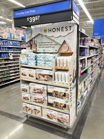 The Honest Company was launching a line of infant care products that included diapers, lotions and wipes. The brand was targeting discerning parents that want to use healthy products for their children that are also eco-friendly. To launch at Walmart, the brand wanted a visually engaging display that could capture shopper attention and educate shoppers about the new products. It had to be durable for the length of the four month launch period to confer a quality message for the product. The overall look and feel had to reflect the values of the brand: health, happiness, quality and environmental consciousness. Finally, it had to be easy to execute at retail to drive strong results.