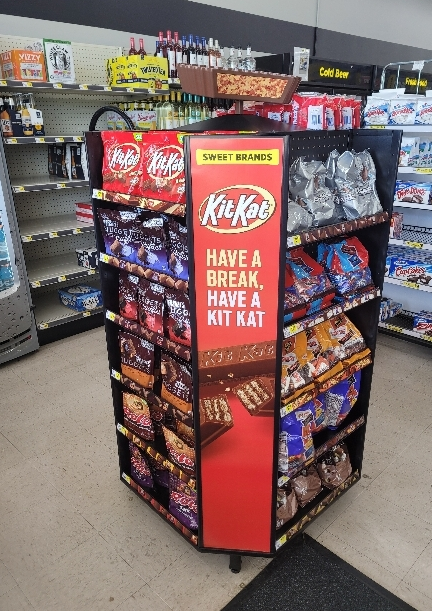 The Objective: Provide cost-effective, versatile snacking 4-way fixture merchandising Hershey’s portfolio, engaging shoppers and driving sales. Provide two identical versions: At launch we shipped out a fully assembled unit that quickly was setup and merchandised. For on-going new store openings and remodels Dollar General required that we provide a KD version to reduce warehouse costs but most importantly that it fit on their truck going to a store with all of their other fixtures. CONSUMERS 1) Design a display that attracts its targeted demographic consumer while reinforcing all of the brand presence at retail. 2) Have messaging areas on all four sides of the display and on top to ensure consumers see the product and make it easily identifiable with branding they recognize. 10' feet away, 5' feet, 2' feet away from a messaging level. 3) Shoppable 4 sides. 4) Small footprint, no sharp edges. RETAILER CONSIDERATIONS 5) Must be durable to endure 3+ years in a difficult retail environment. 6) Adjustability on the shelves for seasonal holiday changes. 7) Engineered to be KD'ed for cost saving when shipping to the Dollar General stores and to fit more on a truck for freight savings. 8) Setup under 25 minutes. 9) All materials used in the manufacturing process are sustainable and recycled raw materials 10) The display needs to hold the properly number of products to provide the sales ROI that was required by the Brand marketer-Hershey's and the retailer-Dollar General to justify the floor space. Design a cost-effective merchandising solution.